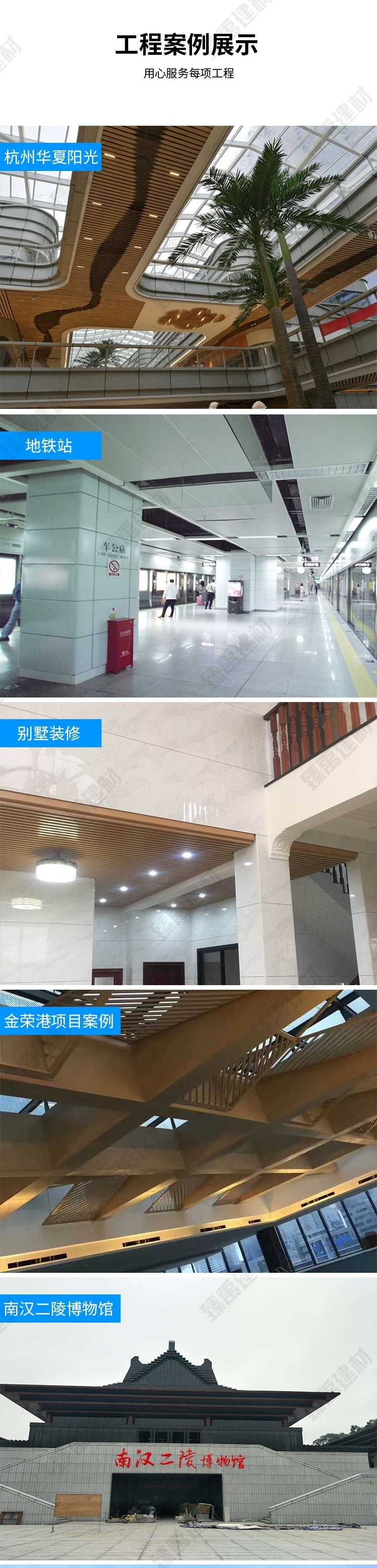 臻禹建材19年專注高品質鋁扣板生產廠家,集研發、設計、生產、銷售、售后、服務一體,是眾多大型企業,政府工程指定供應廠家,有著一站式服務,可根據工程實際需求定制,免費提供設計方案,報價,樣品,交貨速度快
